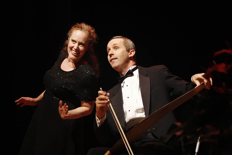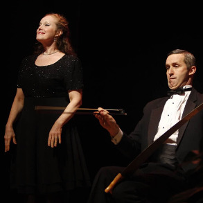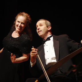 This pair's a real cut-up...its eccentric vaudeville, a comic recital, a true musical comedy. Between a loving soprano and her adoring accompanist. Who plays the musical saw. And six foot lumberjack saw. And circular saw. And electric saw lit on fire.